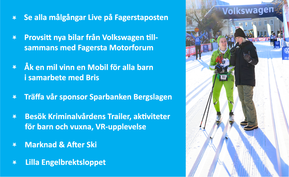 Premiärdagen av vår Vintervecka rivstartar med det populära loppet Åk en mil vinn en bil, lördag den 31 januari, där alla deltagare har lika stor chans att vinna en ny Volkswagen T-Roc värde 392.100 kr. Du väljer din egen starttid i mån av plats mellan kl 10:30-12:00. Starttider finns var tionde minut. Prisutdelningen startar kl 14:30. Men det händer så klart så mycket mer under dagen!